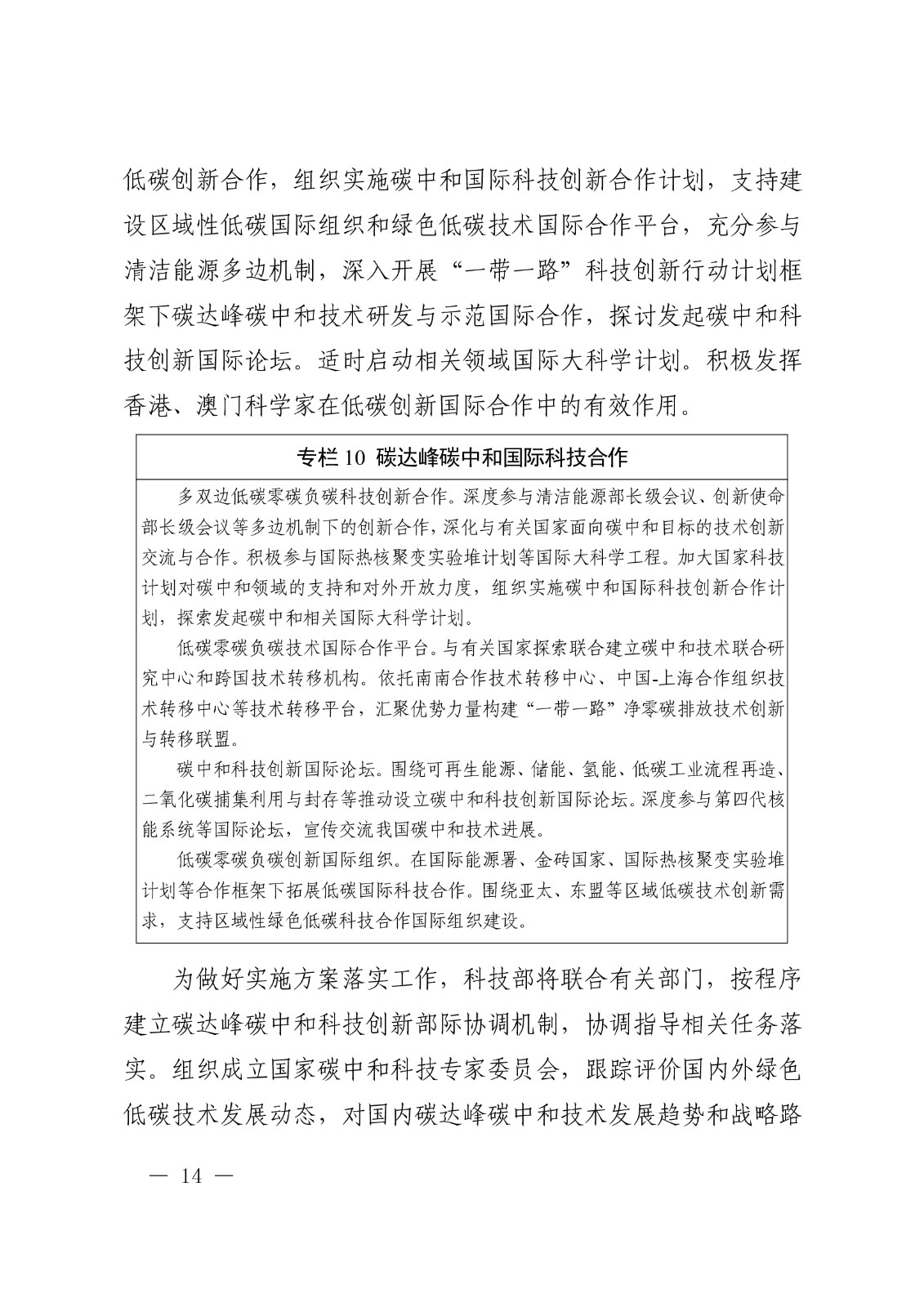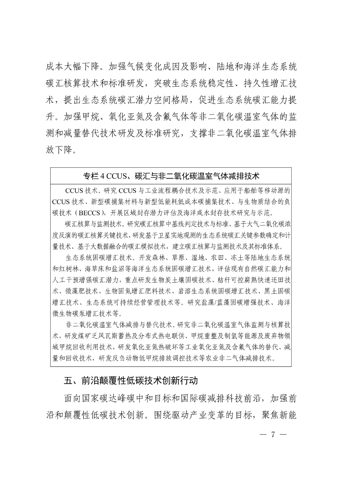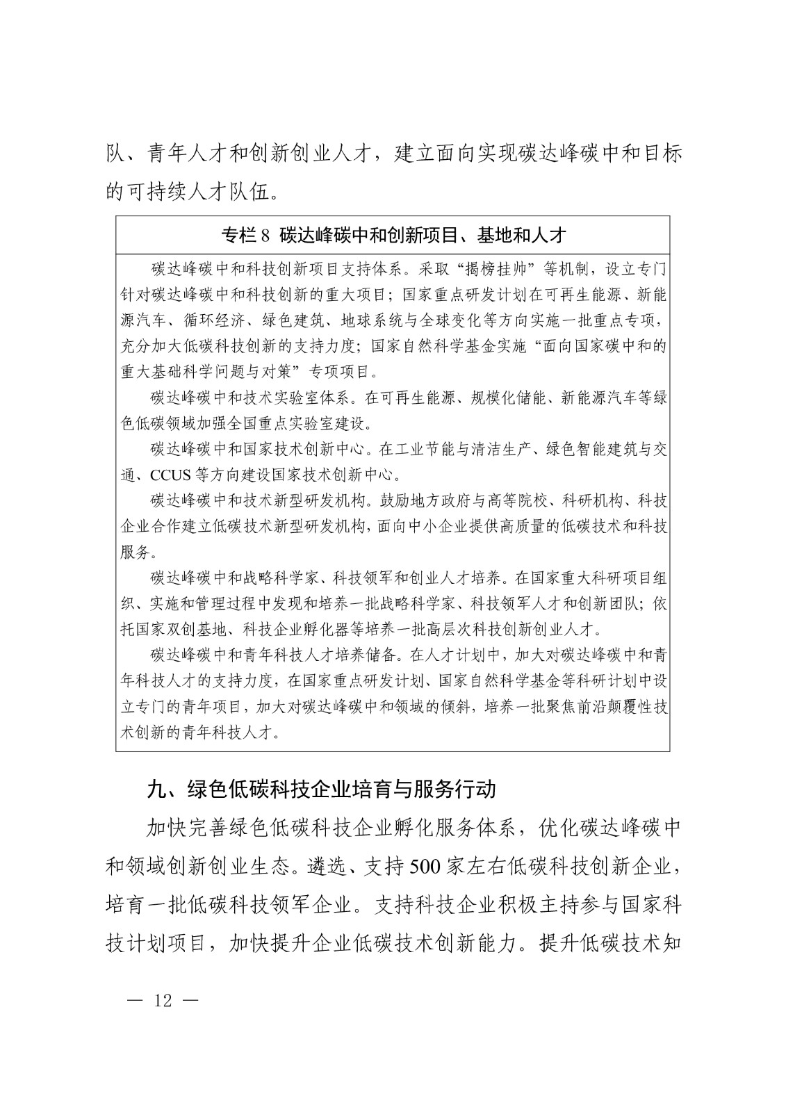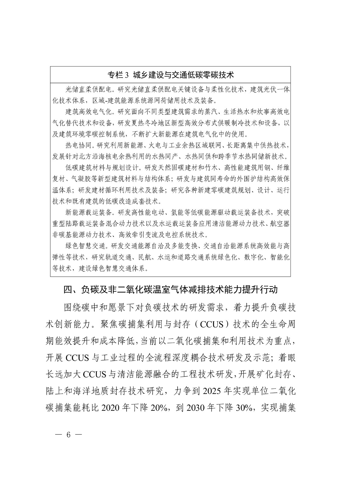 為深入貫徹落實黨中央、國務院關于碳達峰碳中和的重大戰(zhàn)略決策,做好科技支撐碳達峰碳中和相關工作,依據(jù)《中共中央 國務院關于完整準確全面貫徹新發(fā)展理念做好碳達峰碳中和工作的意見》《2030年前碳達峰行動方案》,結合碳達峰碳中和領域科技創(chuàng)新工作新形勢新情況,科技部、國家發(fā)展改革委、工業(yè)和信息化部、生態(tài)環(huán)境部、住房城鄉(xiāng)建設部、交通運輸部、中科院、工程院、國家能源局共同研究制定了《科技支撐碳達峰碳中和實施方案(2022—2030年)》?,F(xiàn)印發(fā)給你們,請遵照執(zhí)行。